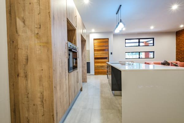 This ground-floor unit offers 3 spacious bedrooms and 2 modern bathrooms, making it ideal for families or professionals. The open-plan kitchen is fitted with sleek quartz countertops, additional built-in cupboards for extra storage, and flows seamlessly into the living area, which opens to a built-in braaiperfect for relaxed entertaining. The apartment is fibre-ready, ensuring fast and reliable connectivity.