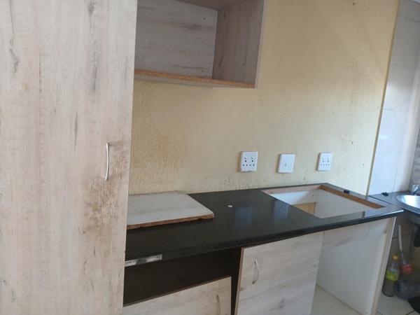 This cottage offers a bedroom with a built in wardrobe, a kitchen with a built in unit, shower, toilet and basin. The yard is fully paved, walled with a gate. Parking available for one car. The price is inclusive of water. Immediate occupation.