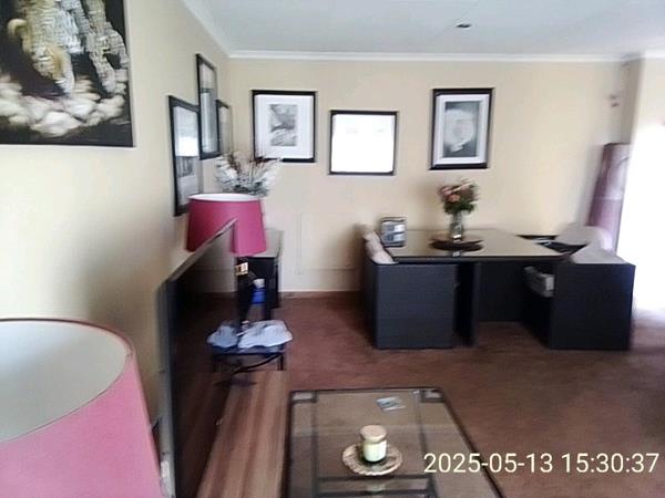 This home is set in a cul-de-sac. It has a shared automated access gate leading to one motorised garage. The home is approximately 140 square meters in size. It has 2 large bedrooms with B.I.C.''s, 2 bathrooms and open plan lounge - dining room and kitchen with space for 1 water appliance and single door fridge with abundant cupboards. Burglar bars on all windows, security doors. The unit is Fibre ready. R10200 excluding fixed fee of R2500 for water, electricity, sewerage and refuse. This property has two houses, a small business all with their own seperate entrances. 1 small dog only.