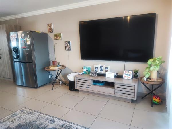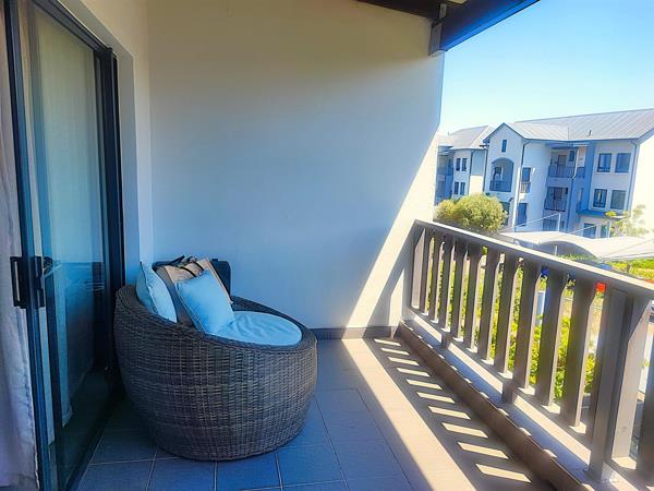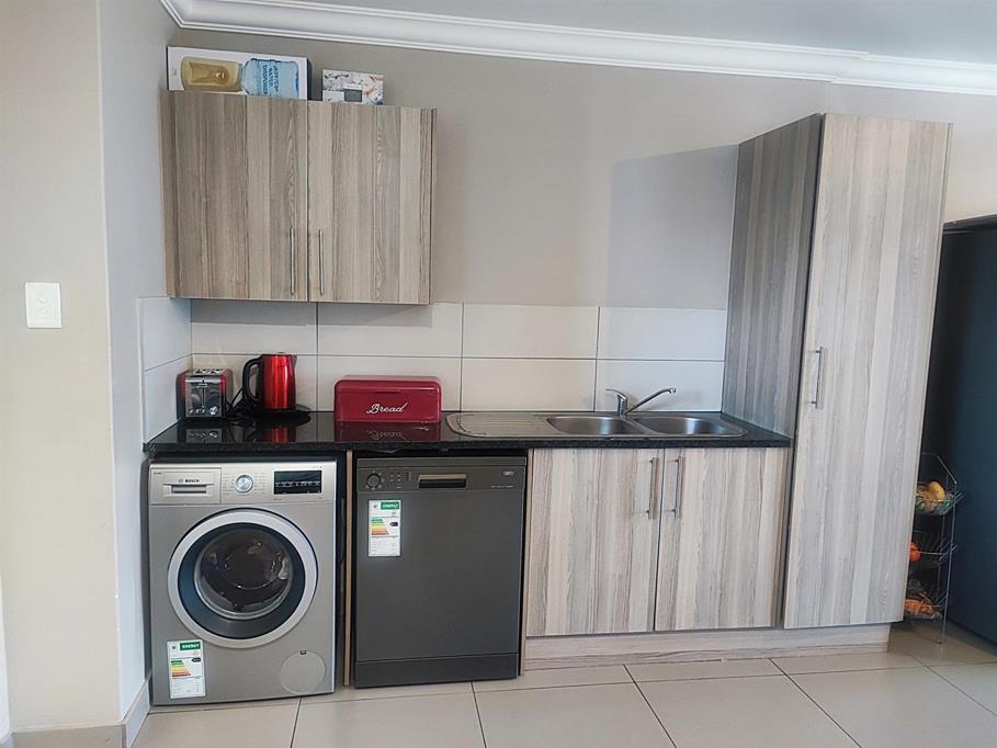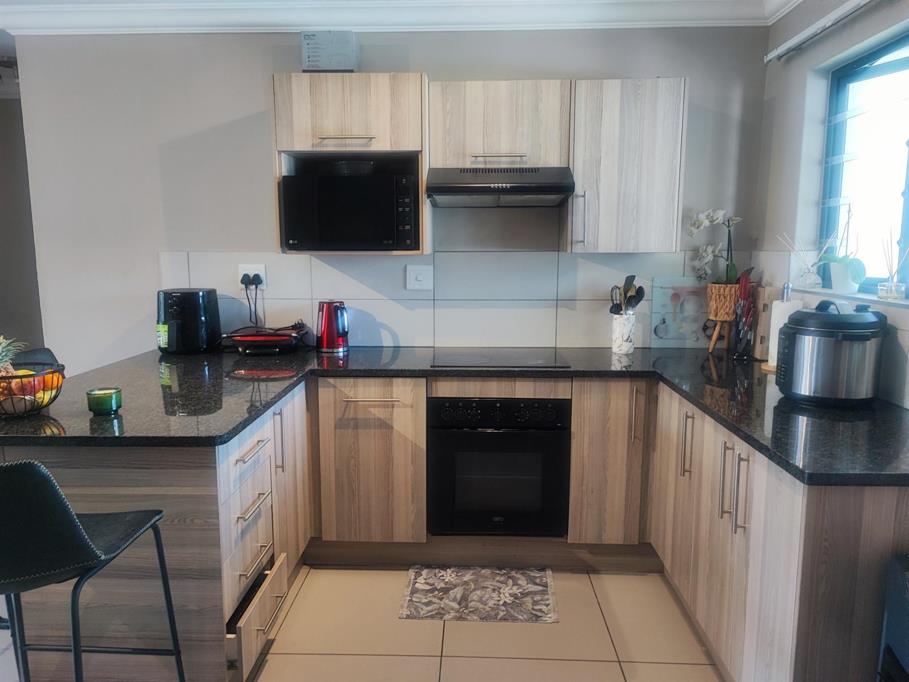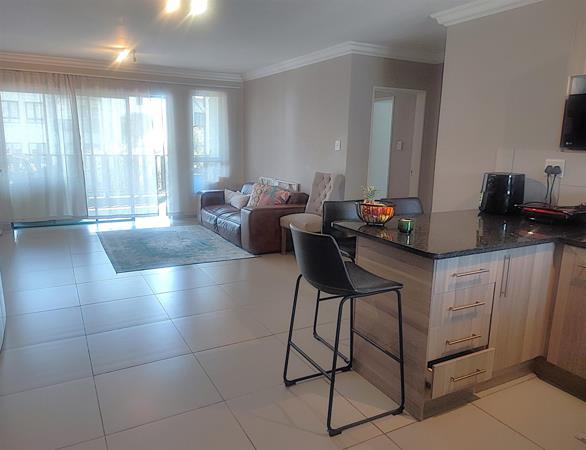 The spacious open plan living area and well-appointed kitchen open onto a large private balcony, suitable for entertaining. The modern kitchen features granite tops, with ample storage space. The scullery/ laundry area consists of cabinets, a sink and under counter space for two appliances. Both bedrooms are fitted with built- in cupboards. The main bedroom accommodates a Queen size bed while the second bedroom has space for a Double bed. There is one full bathroom, and the second bathroom has a shower. One carport and one open parking space are allocated to the apartment with ample visitors parking provided throughout the Complex. The well maintained gardens offer a peaceful green environment. There is a Clubhouse, swimming pool, jungle gym, and braai facilities.