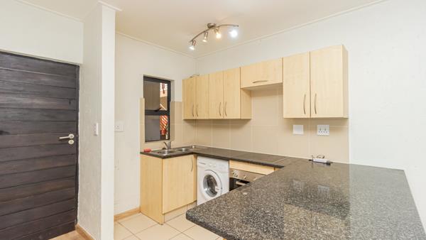 A well-appointed 1-bed unit on the ground floor, facing north. A spacious sunny unit, with a large patio for entertaining all year round. Space for one appliance in the kitchen. Make an appointment to view it. Laminate flooring throughout.