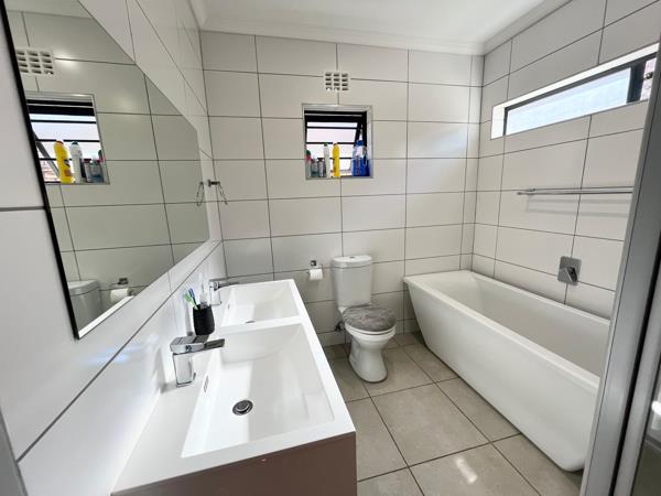 The master bedroom is a sanctuary of comfort, featuring an en-suite bathroom with modern his and hers vanity and beautifully designed fixtures and fittings. The two additional bedrooms are spacious, with built-in wardrobes, offering ample storage and suitable for a growing family.