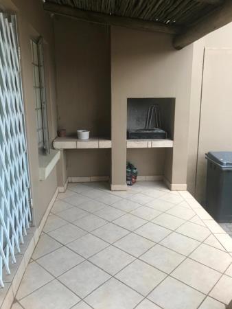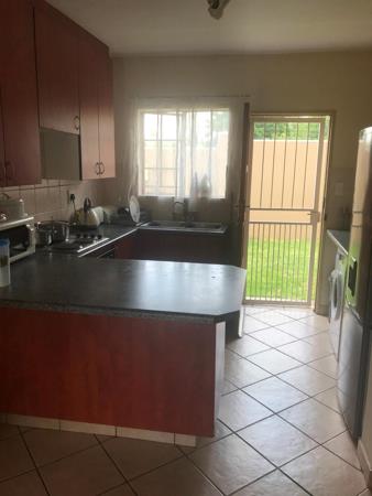 This neat and cosy cluster offers 2 bedrooms, 2 bathrooms, and a guest toilet. The sunny, open-plan living area includes a lounge and dining space leading to a well-equipped kitchen with cupboards, working space, a hob, an under-counter oven, and space for one appliance. The front garden features a patio ideal for entertaining, complete with a built-in braai, while the back garden includes washing lines.
