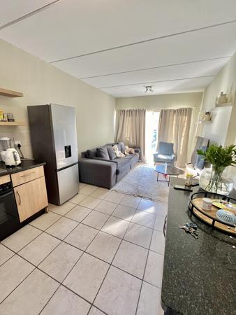 This two bedroom, one-bathroom apartment features an open-plan kitchen fitted with built-in cupboards, creating a seamless flow into the living area.