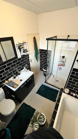 The bathroom includes both a shower and a bathtub, providing comfort and versatility.