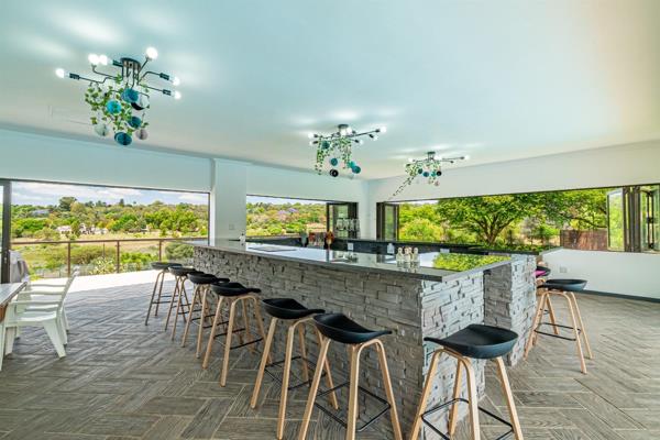 The expansive entertainment areas include a lounge and dining room, seamlessly flowing into the beautiful outdoor spaces. The covered entertainment area features a built-in braai and bar, ideal for alfresco dining and entertaining. Enjoy breathtaking views of the reserve while relaxing in the tranquil surroundings.