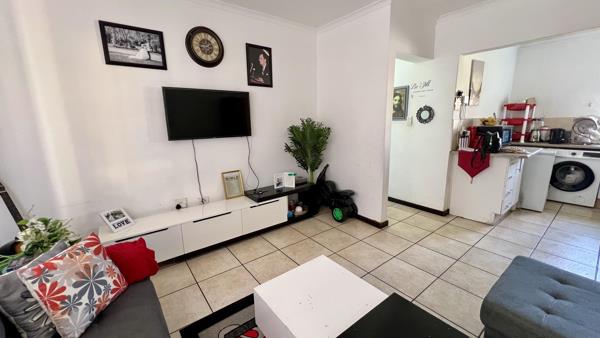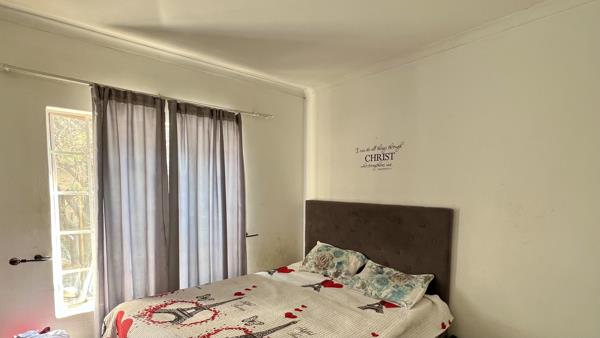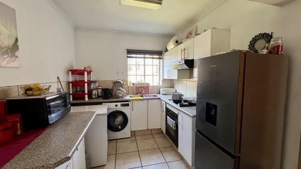 The unit features two well-sized bedrooms, both fitted with built-in cupboards, and a full bathroom with bath and shower. The entire home is tiled throughout, making for easy maintenance.