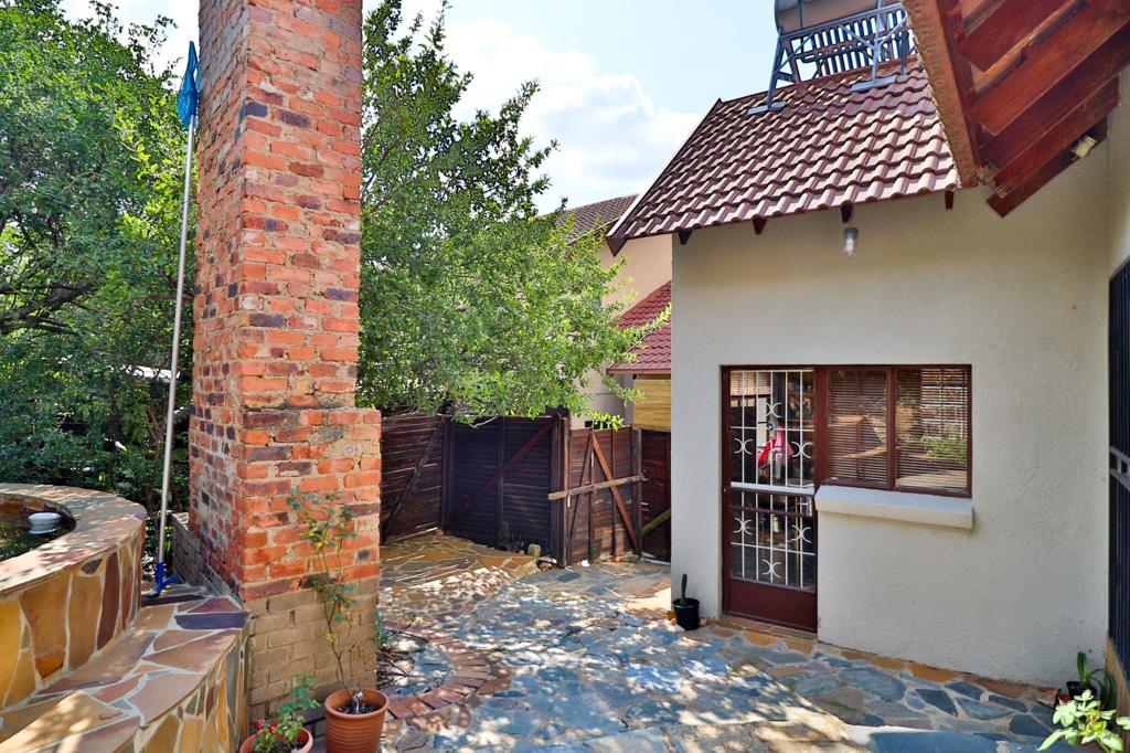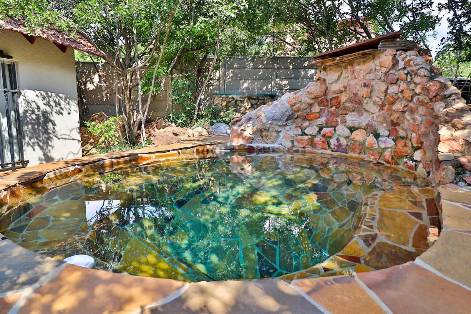 One of the highlights of this cottage is the outdoor living space. A backdoor leads to a private patio area, ideal for outdoor dining, relaxation, and entertainment. The patio features a built-in braai, making it an ideal spot for barbecues and social gatherings. Additionally, the cottage provides access to a private swimming pool, offering a refreshing escape on hot days and a serene spot for relaxation.