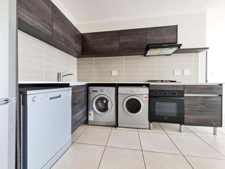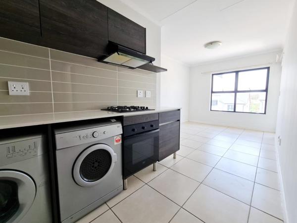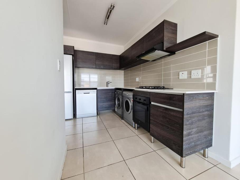 Modern throughout, it comes equipped with a fridge, dish-washer and washing machine. The open plan lounge leads onto the balcony that overlooks the estate and the beautiful Jhb sunsets.