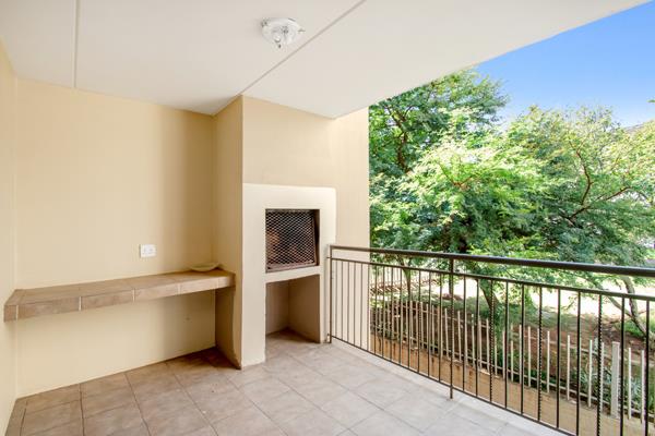 This delightful sunny first floor apartment overlooking pool is available 1 January 2026. Spacious open plan kitchen lounge area. Opens onto covered patio that has a built in braai. Main bedroom off the patio with double cupboard space. Good sized second bedroom also with built in cupboards. Two spacious bathrooms. One with walk in shower, toilet and basin the other with bath, basin and toilet. Kitchen has space for one water appliance and relatively new cupboards and fibre is installed in this unit. Good 24 hour security. Two dedicated covered carports. Close to Northgate shopping mall. Walking distance. Public transport also close. Close to Sharonlea Primary and Northriding Secondary schools. Also Aurora.