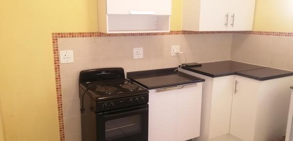 Well-lit lounge/dining room which leads onto a balcony overlooking the pool area. Separate kitchen with freestanding stove and double sink. Ample cupboards.