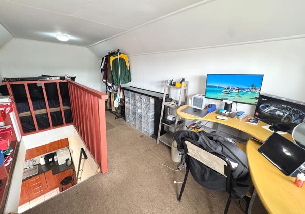 Enter into an open plan kitchenette and lounge. Off the lounge is a bathroom with shower. Upstairs is the loft Bedroom with a study space or area to relax and a bedroom area. Stunning views from the study area. One open parking only.