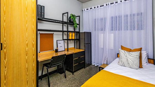 Residents can enjoy a range of lifestyle facilities including a fully-equipped gym, private cinema, games rooms, communal lounges & kitchens, study rooms, pool deck with braai areas, indoor soccer field and basketball courts. Other facilities include The Campus Caf for when you need to grab a bite or the print bar and laundromat located on the ground floor. The Campus also offers FREE social events throughout the year!