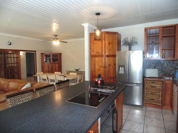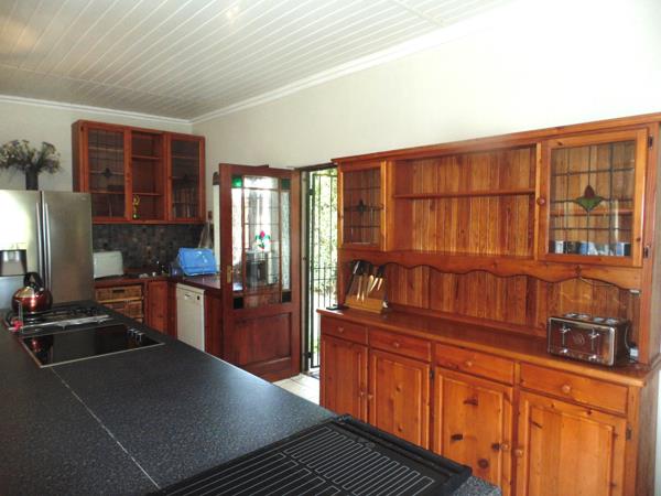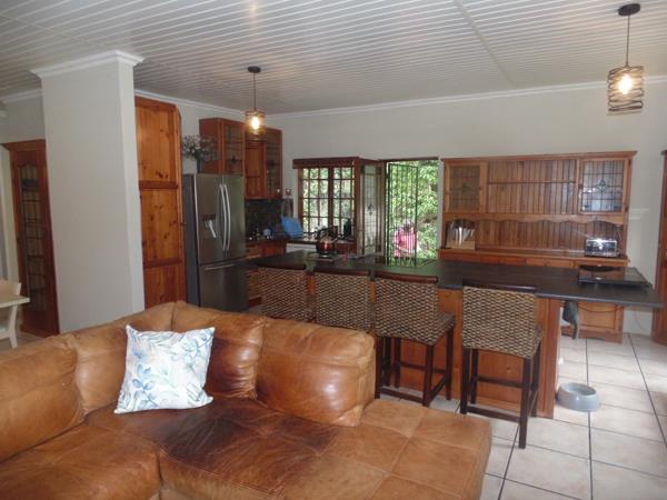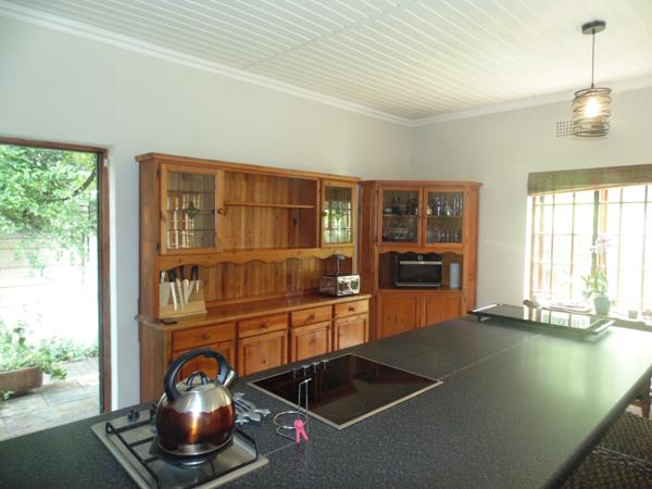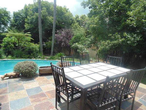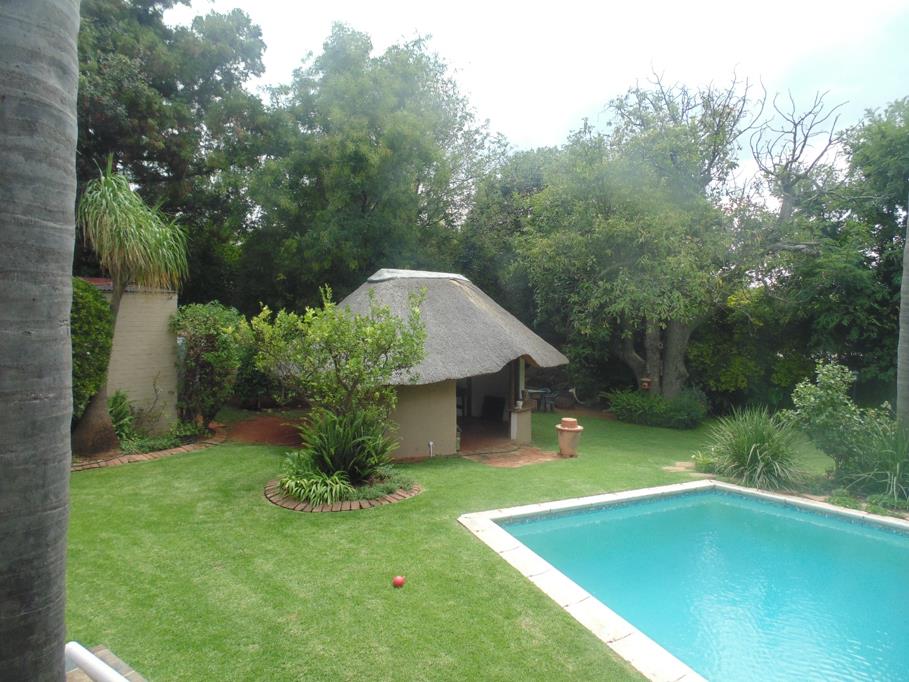 The living areas are bright and welcoming, with large windows allowing ample natural light. A cozy fireplace adds warmth and ambiance, while the stylish paneled ceilings contribute to the home''s character. Step outside to discover a private outdoor oasis, ideal for relaxation and entertainment. The property features a large, clean swimming pool, a charming thatched lapa, and a lush, established garden. A tiled patio provides ample space for outdoor dining, making it perfect for enjoying the South African climate.