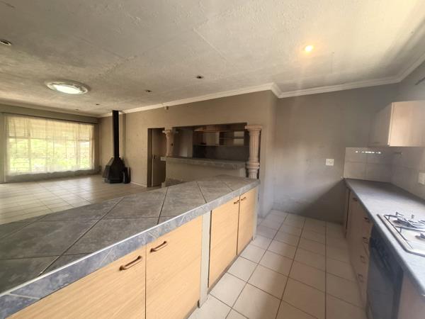 Kitchen has gas stove and lounge has wood burning fire place