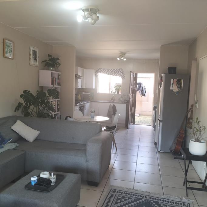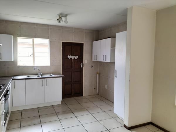Open -plan lounge dining all neatly tiled . Kitchen is nifty with loads of counter and storage space. Undercounter positioning for appliances. A storage cupboardpantry a big plus.