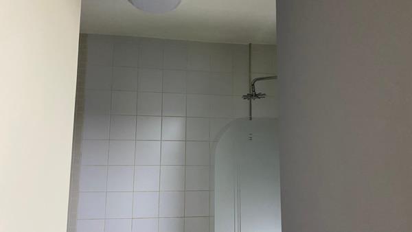 The modern bathroom comes fitted with a bathtub, overhead shower, toilet, and hand basin, offering both comfort and functionality. The unit also features an Egoli gas stove for efficient cooking, prepaid electricity, and a Trellidor security gate for peace of mind.