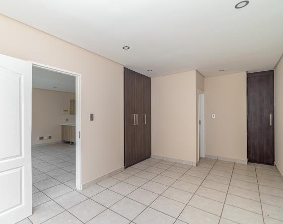 The spacious bedroom is well-sized with built-in cupboards coupled with an en-suite bathroom.