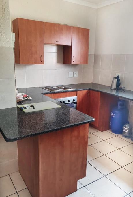 A spacious kitchen with granite tops and space for 2 appliances. Loads of cupboard space.