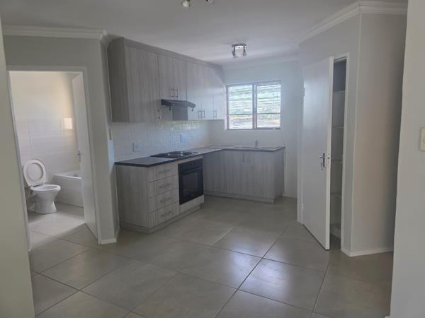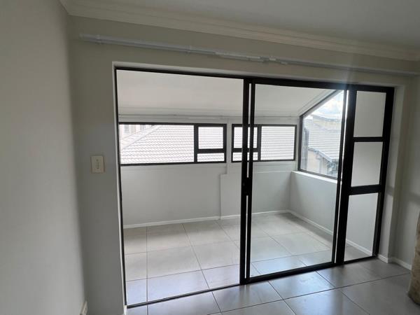 When you walk into the unit, you see an open plan lounge and kitchen area. The kitchen has lots of cupboards and there is a nice sized pantry. The lounge area is fairly-sized and there is a closed off balcony that one can use as a dining room, study or sunroom. The windows are aluminium style and there is plenty of light making this apartment bright and sunny.
