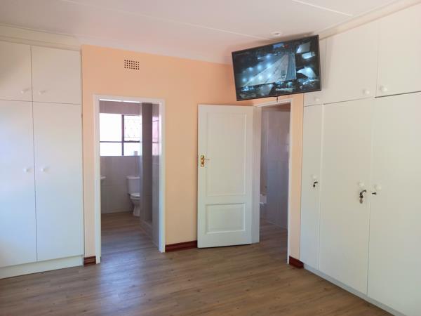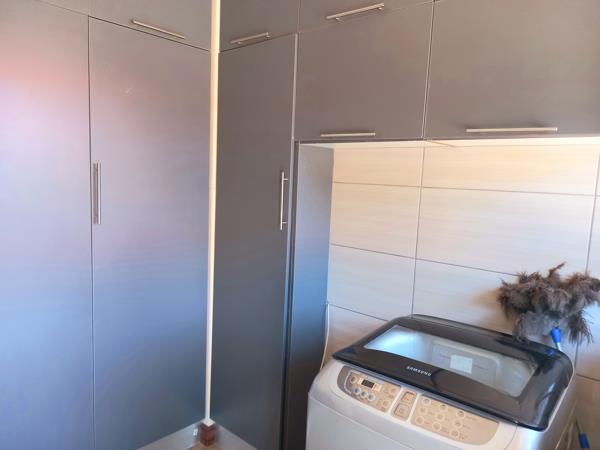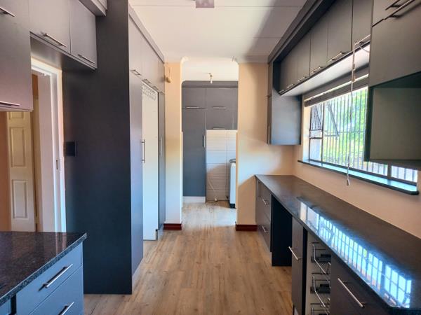 The kitchen has a separate scullery and place for a large fridge and 2 water appliances , with large pantry and ample storage cupboards and counter work space, granite tops and modern fittings.