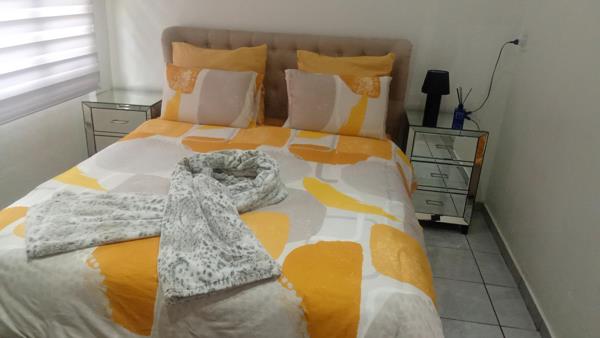 This charming home features two spacious fully furnished bedroomsone with a comfortable double bed and the other with two cozy single beds perfect for families . The interiors are tastefully decorated with modern finishes and fresh calming paint on the walls. The home is designed with a blend of contemporary style and comfort, offering a relaxing atmosphere throughout. The Kitchen has Built in cupboard. The property includes two bathrooms, each equipped with fresh towels, ensuring a pleasant stay. The bathrooms are designed for comfort with invigorating showers and a clean, fresh scent. The area is quiet and peaceful, providing a calm and serene environment ideal for relaxation. The home comes with essential amenities such as Wi-Fi, security services, and an electric fence for added peace of mind.