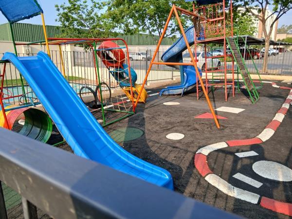 A safe and fun playground area for children and communal garden.