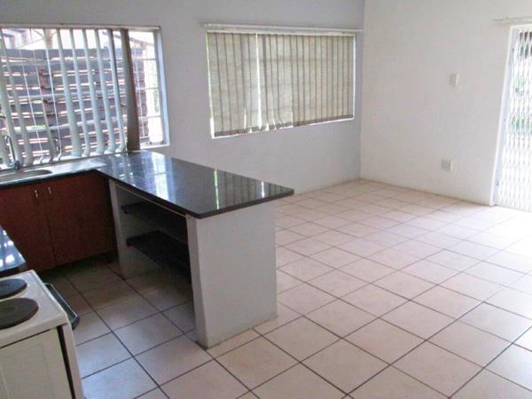 The open-plan lounge and dining area lead out onto a warm, welcoming patio that overlooks the beautifully maintained communal garden