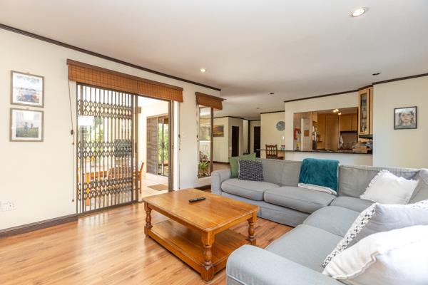The home offers a covered patio with built-in braai and a wrap around garden with a private fenced swimming pool.
