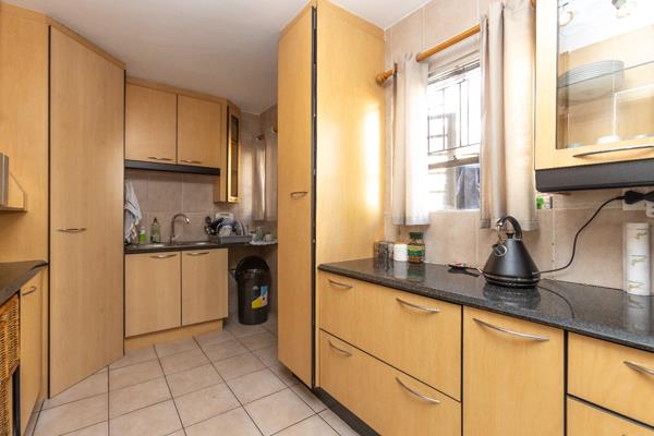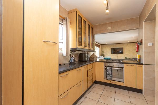 The home offers a neat kitchen which offers ample cupboard space and complete with gas hob, space for 1 undercounted appliance in the kitchen (washing machine is fitted in the garage) and space for a single door fridge as well as a breakfast nook.