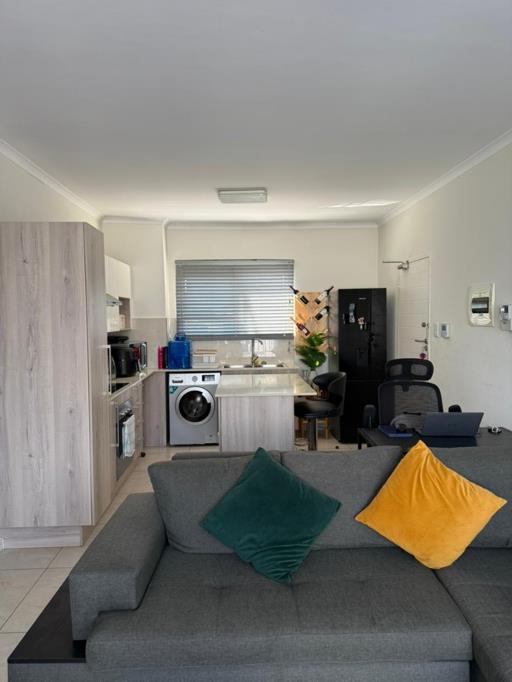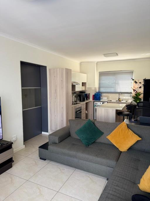 This home offers two spacious bedrooms, both fitted with built-in cupboards, and a full bathroom featuring both a bath and shower. The open-plan living area flows beautifully into a modern kitchen, designed with ample cupboard space and quality finishes, creating an inviting space for both cooking and entertaining.