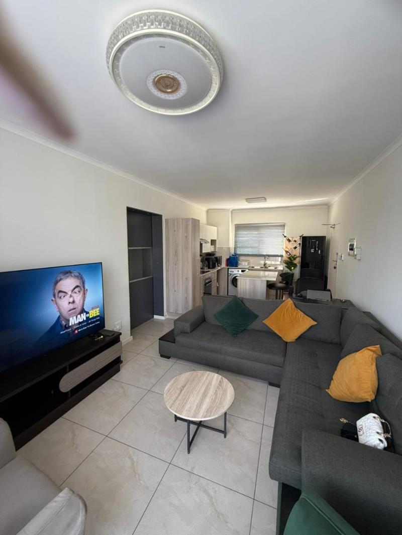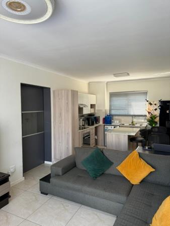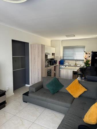 This home offers two spacious bedrooms, both fitted with built-in cupboards, and a full bathroom featuring both a bath and shower. The open-plan living area flows beautifully into a modern kitchen, designed with ample cupboard space and quality finishes, creating an inviting space for both cooking and entertaining.