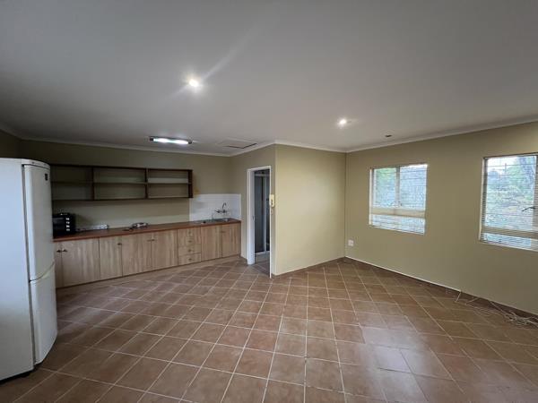 Downstairs, a relaxing outdoor area awaits, ideal for braais, entertaining friends, or simply reading and enjoying the fresh air. The flat comes with Wi-Fi included and can be furnished upon request, making it an ideal move-in-ready option for a single professional or couple.