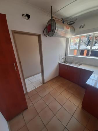 The kitchen is spacious, with ample storage space and built-in cupboards and offers enough room for an additional appliance, a stove is not included.