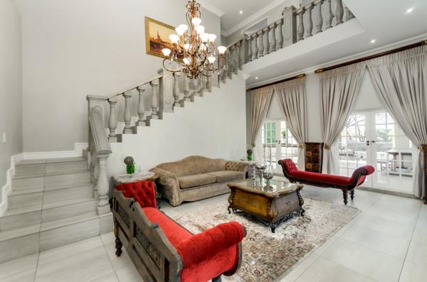 The layout includes four en-suite bedrooms on the ground floor, including a luxurious main suite that opens onto the patio, while upstairs offers a pajama lounge and two additional en-suite bedrooms. Beneath the patio are two more en-suite rooms, perfect for guests or staff, and above the garage is a spacious studio ideal as a playroom, office, or creative space. Security is top-notch with high walls, electric fencing, garden beams, surveillance cameras, and a comprehensive alarm system. The property is available unfurnished, with an option for semi-furnished if preferred for R55 000 per month.