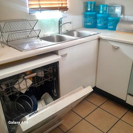 - Kitchen with lots of cupboards and a dish washing machine
