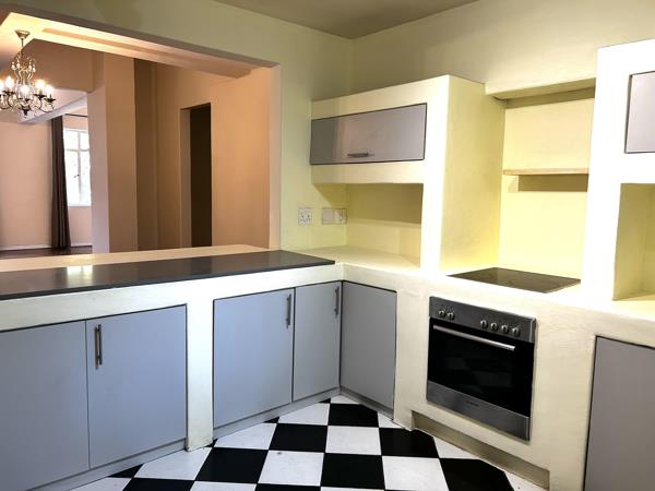 One enormous space filled with warmth and sunlight serves as the combined lounge and dining area. Re-done kitchen with space for 2 appliances, option to include dishwasher and washing machine if required.