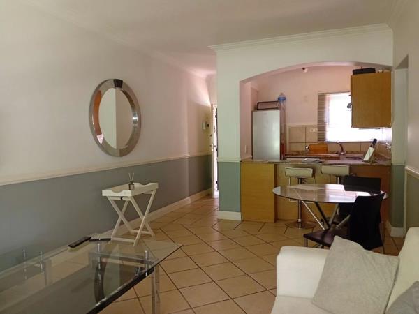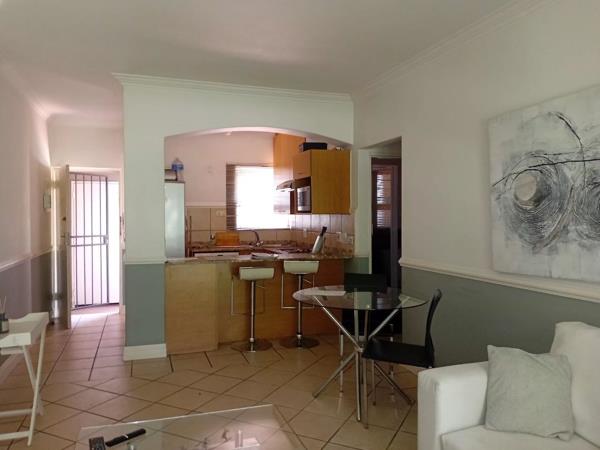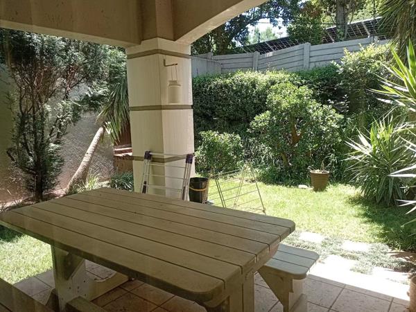 This fully furnished 1 bed 1 bath garden apartment has an open plan kitchen and living room area that opens out onto a covered patio and private garden. It has granite tops in the kitchen with decent cupboard space plus a spacious bedroom that overlooks the private garden. The bathroom has a bath and shower. All this in a well managed secure complex with 24 hour security and just across the road from restaurants and mall at Melrose Arch. Available 1 December