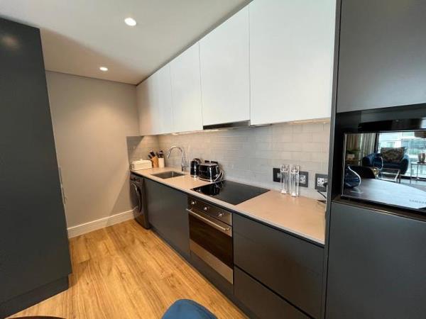 Integrated appliances keep the space clutter-free, including a built-in fridgefreezer, dishwasher, washerdryer, and microwave. Just bring your groceries!