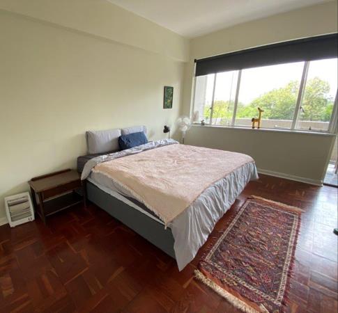 This apartment is tastefully decorated with the basics and has parquet wood flooring throughout. The kitchen is well-appointed with good cupboard space. The large north facing balcony is sunny and overlooks the complex garden, beautiful trees and communal swimming pool.