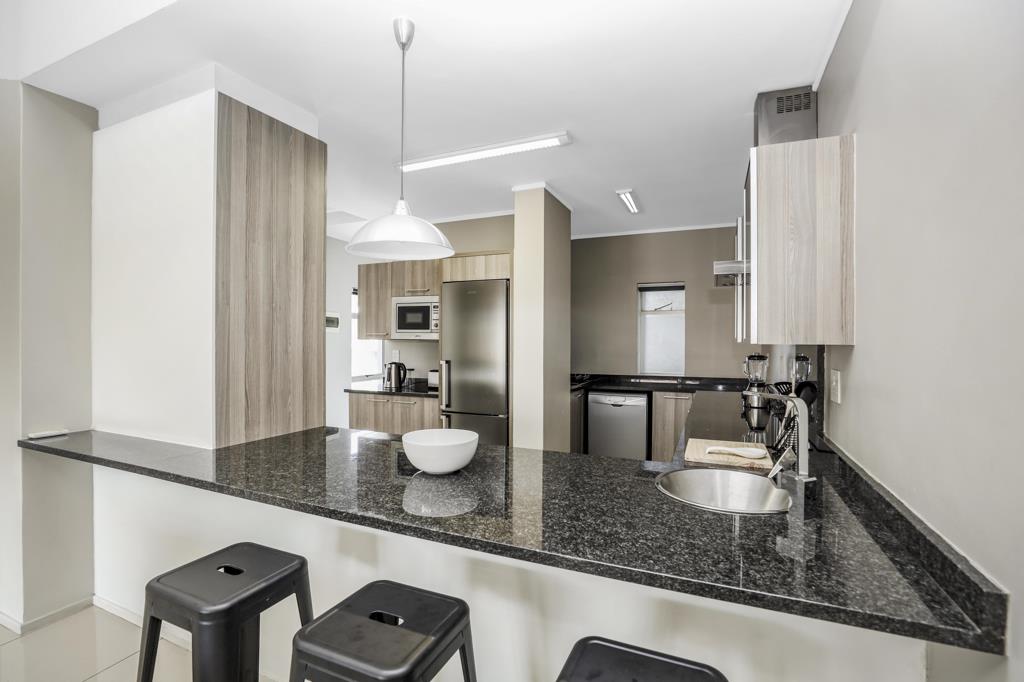Step into a well-furnished apartment featuring a sleek and functional kitchen with granite countertops, built-in Smeg appliances, and a kitchen island with an eating area, perfect for casual meals or entertaining. This fully furnished 3-bedroom apartment in the highly sought-after Park Street Estate combines modern finishes with comfort and style.