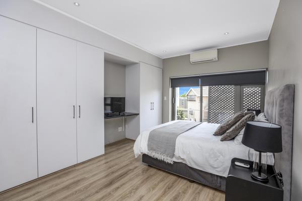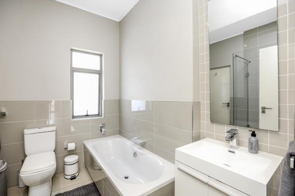 The apartment offers three well-proportioned bedrooms. The main bedroom is a private retreat with a full en-suite bathroom and direct balcony access. The second bedroom also has balcony access and shares a modern bathroom conveniently located across the passage with the third bedroom. A guest toilet and a linen cupboard provide additional convenience and storage.