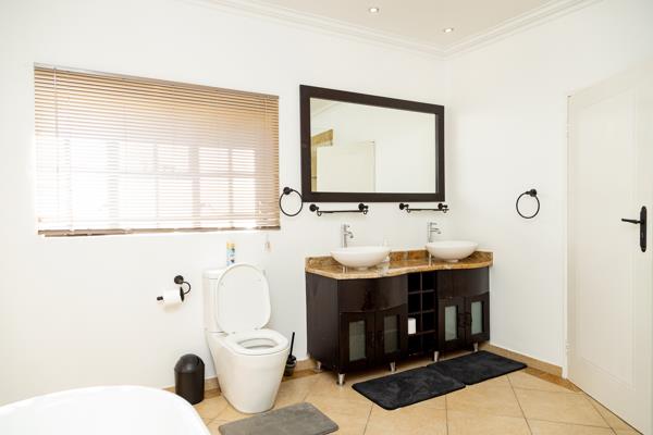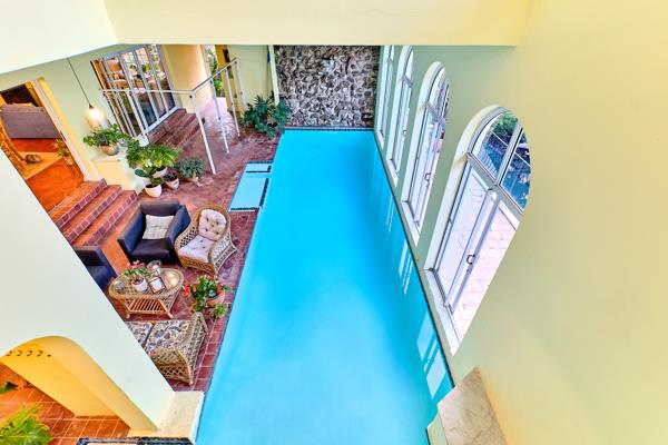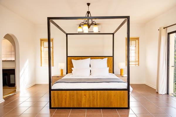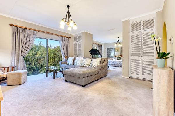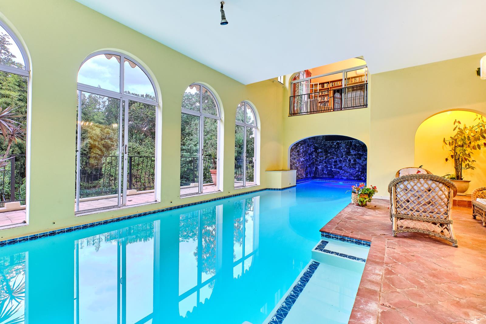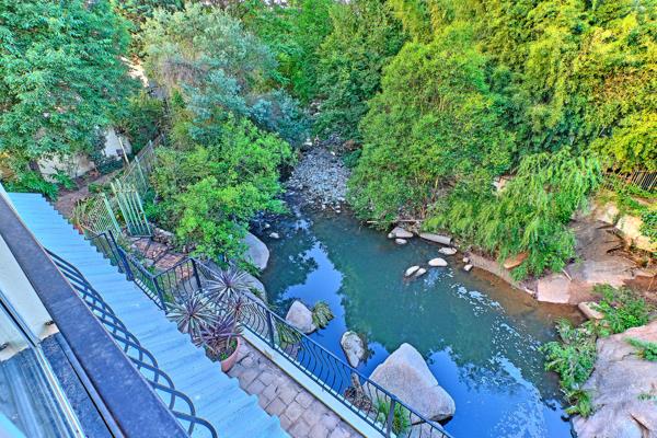 the home now offers a unique position overlooking the river with modern comfort, and set against the panoramic views over the Bronkhorstspruit River.. A large indoor pool with doors opening out onto a balcony , overlooks the river and lush greenery in summer .