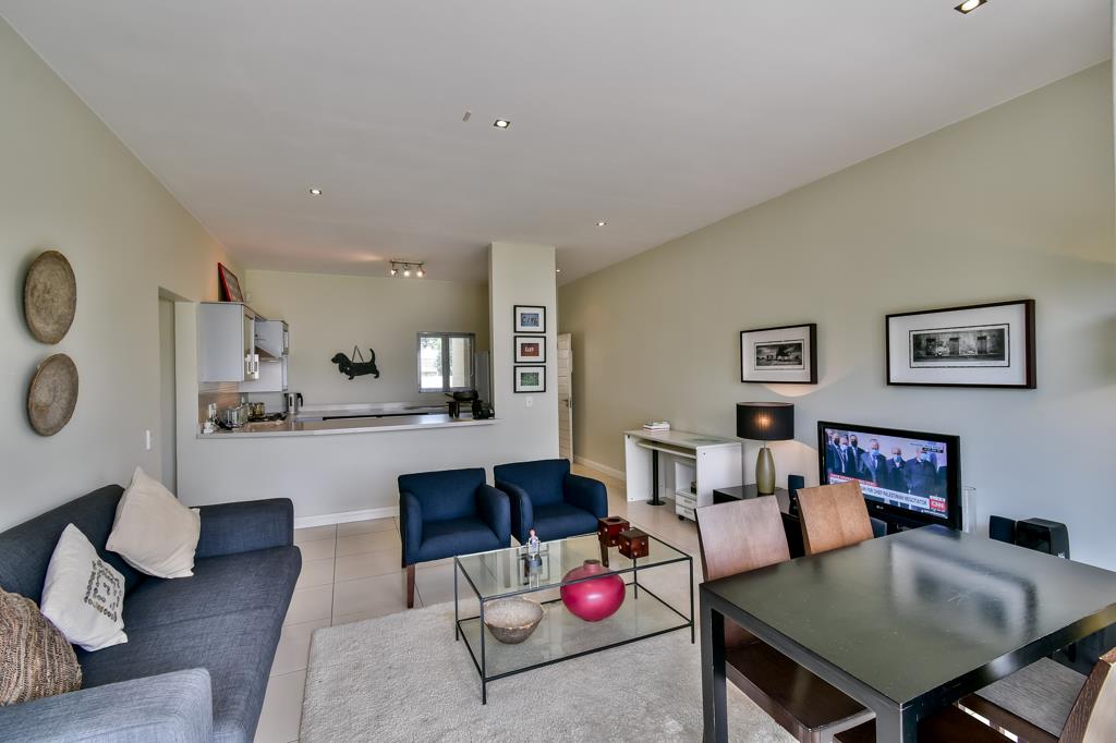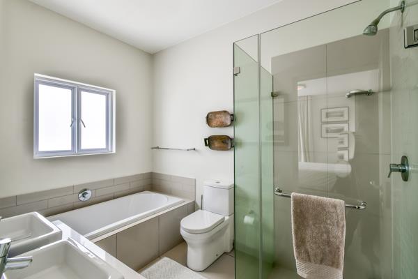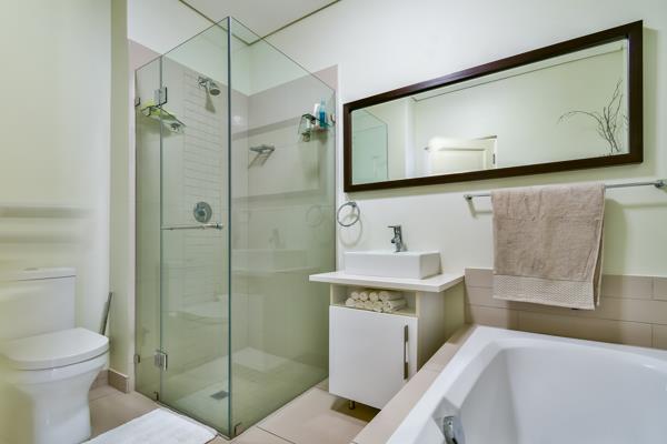The kitchen is open plan with contemporary finishes, there is allocation for three appliances and an electric oven with gas hob piped gas. The living area comprises a generous living and dining area and opens out onto a covered patio. The main bedroom is en-suite while the second bedroom has a separate bathroom. Good cupboard space throughout completes this sophisticated and immaculate apartment. The apartment is connected to fibre and ready for you to organise your own fibre contract. There are two underground parking bays with lift access. A very well maintained and managed complex. The communal areas are pristine and include lush gardens and a swimming pool.