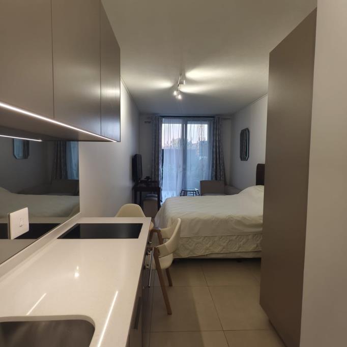 Heart of Rosebank, close to Rosebank Mall and Gautrain station. Secure Bachelor unit with pvt patio for the extra space. Ideal for short-term business traveler. Reception, Security, @The One Rose Bank.