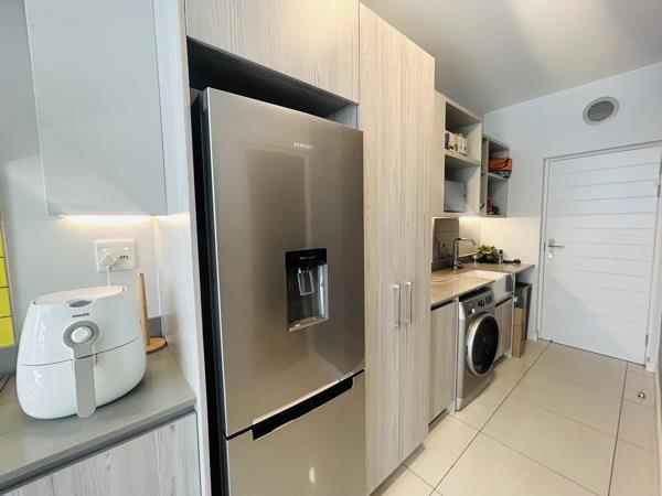 Luxuriously designed kitchen with SMEG gas hob, extractor, electric oven, stone counter tops, a deep, farm style basin with an overhead drying rack, space for 2 under counter appliances and volumes of cupboards. Private bedroom with ample cupboard space. Spectacular full bathroom with a separate guest loo. Spacious living area leads to the private courtyard.