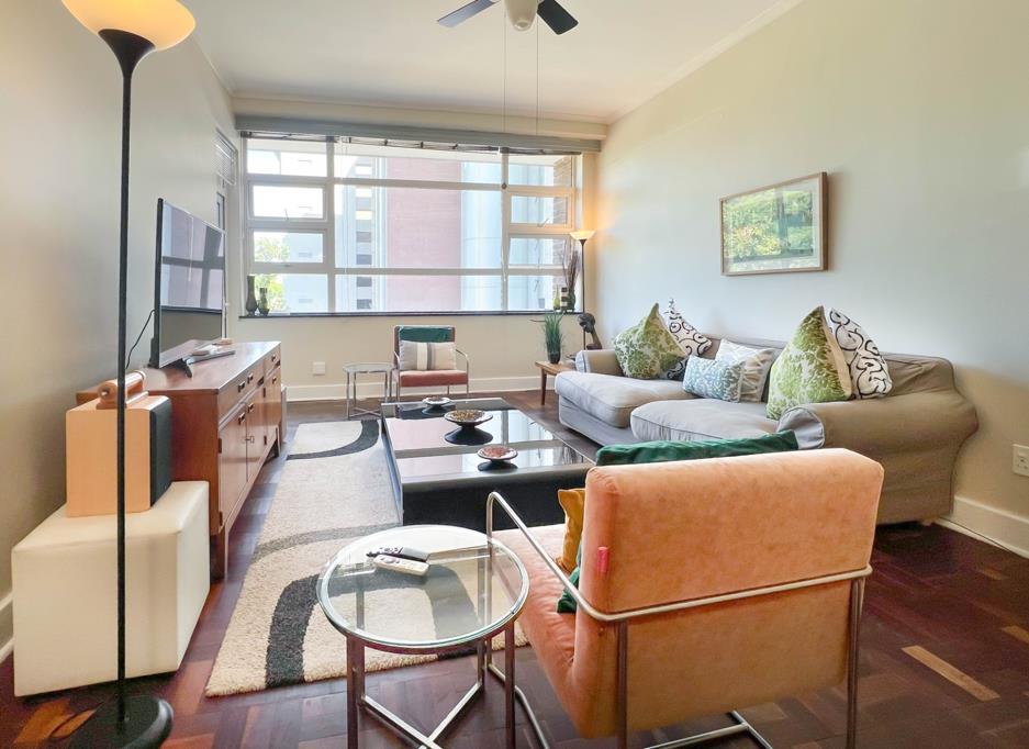 Sunny and spacious! 120sqm, two bedroom, two bathroom mid-century inspired furnished and serviced apartment in the heart of vibrant Rosebank. It has spacious rooms and high ceilings, and double glazed sound proof windows.