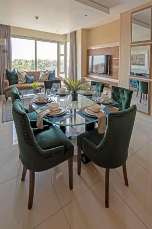 Exquisitely furnished, 2 bed 2 bath apartment at The Tyrwhitt. This 107.7 SQM offers the height of luxury and opulence. Excellent corner view of Rosebank. Stunning fitted kitchen with a double-sink, space for 2 under-counter appliances, lovely kitchen island and gas cooking facilities. Spacious living area with sliding door to the balcony. Both bedrooms have built-in cupboards and access to the balcony from the bedrooms. Huge main bedroom main en-suite. Bathrooms have phenomenal finishes with a wonderful shower and bath facilities. Gorgeous furnishing. Includes storage room. Ideal for diplomats, professionals, couples and roommates. Just land and bring your suitcase.