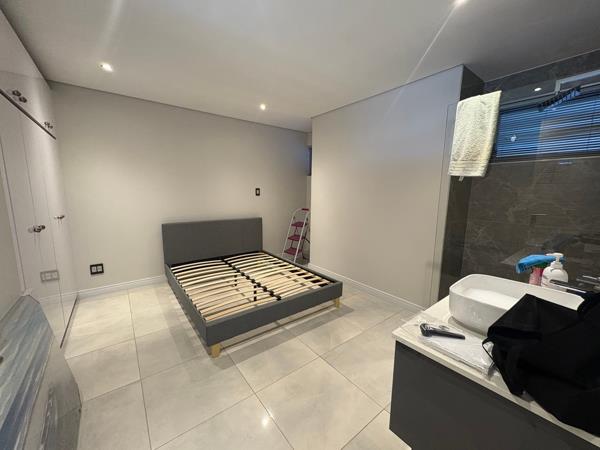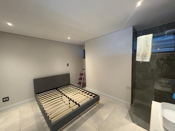 1 full bedroom with built-in cupboards and open plan shower