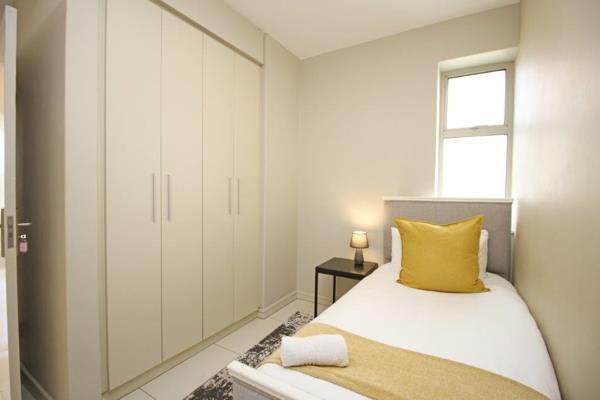 Beautiful fully furnished 3 bedroomed apartment available in a top class upmarket building. Spacious and elegant ,this plush fully furnished apartment is ideal for a corporate with all the modern conveniences one could need from built in wifi, air conditioning throughout, to serviced options and laundry The living areas comprise a generous lounge, dining room and fabulous open plan kitchen combined. The contemporary open plan kitchen is spacious and well-appointed. The living areas open onto a balcony overlooking the hustle and bustle of Rosebank. There is in addition a private patio overlooking the gardens, simply superb for entertaining and relaxing.